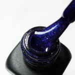 A dark blue sparkle peel-off gel polish with a clean finish. Designed for polished, everyday or evening wear.