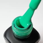 A bright jade-green peel-off gel polish with clean colour. Fresh and vibrant, perfect for bold daywear.