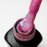 A rose-toned peel-off gel polish with delicate sparkle. Refined and luminous, ideal for polished looks.