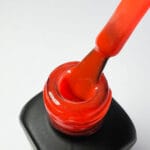 A neon orange gloss peel-off gel polish with a clean finish. Designed for polished, everyday or evening wear.