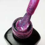 A iridescent pink sparkle peel-off gel polish with a clean finish. Designed for polished, everyday or evening wear.